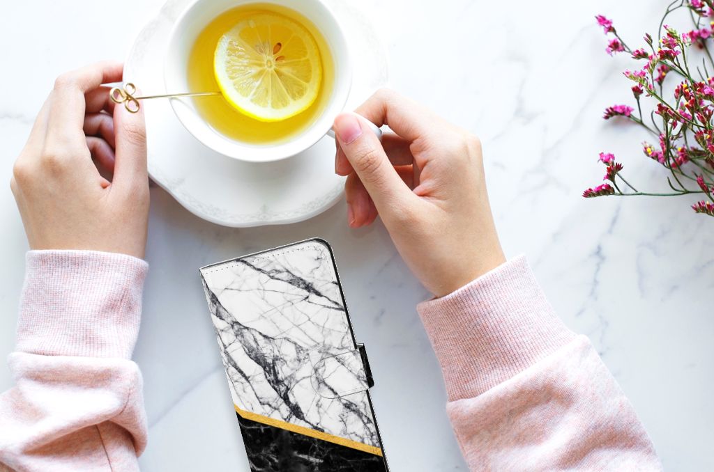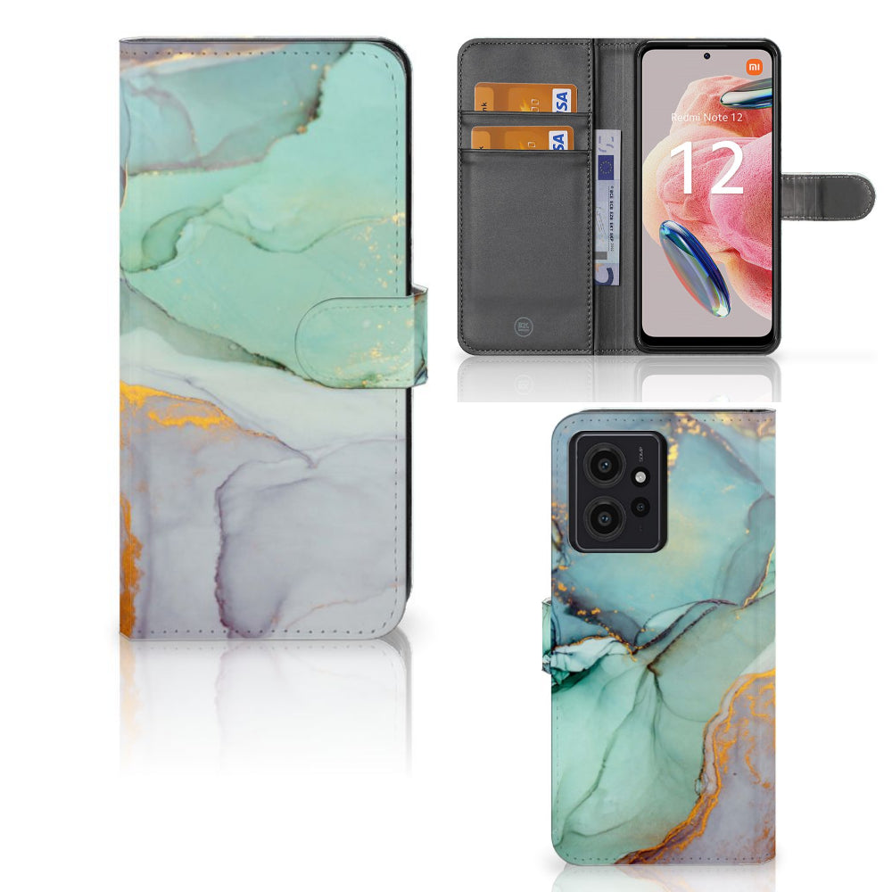 Xiaomi Redmi Note 12 4G Bookcase Marmer Wit Zwart - Origineel Cadeau Man