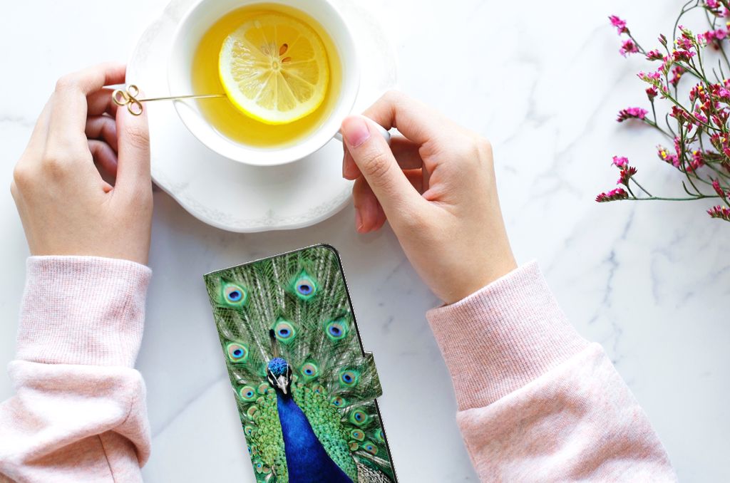 Xiaomi Redmi Note 12 4G Telefoonhoesje met Pasjes Pauw met Bloemen
