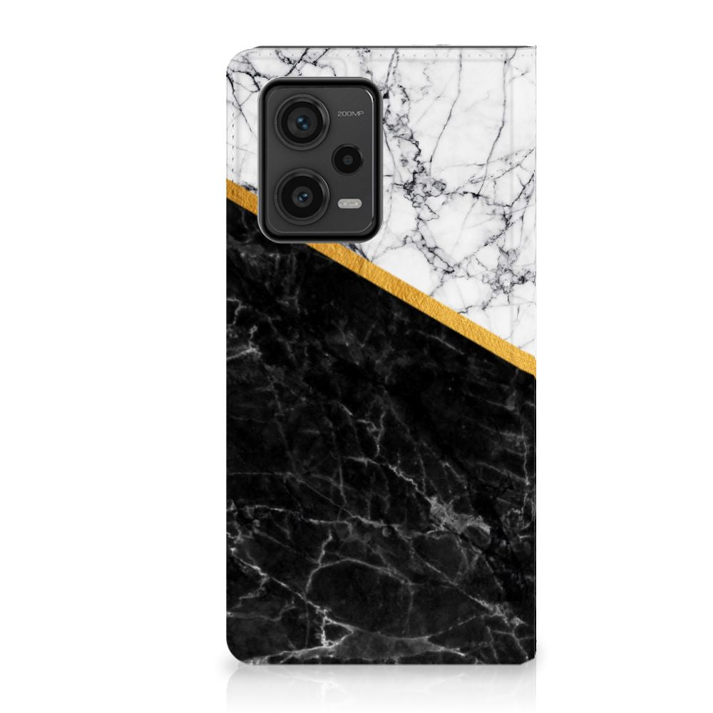 Xiaomi Redmi Note 12 Pro Plus Standcase Marmer Wit Zwart - Origineel Cadeau Man