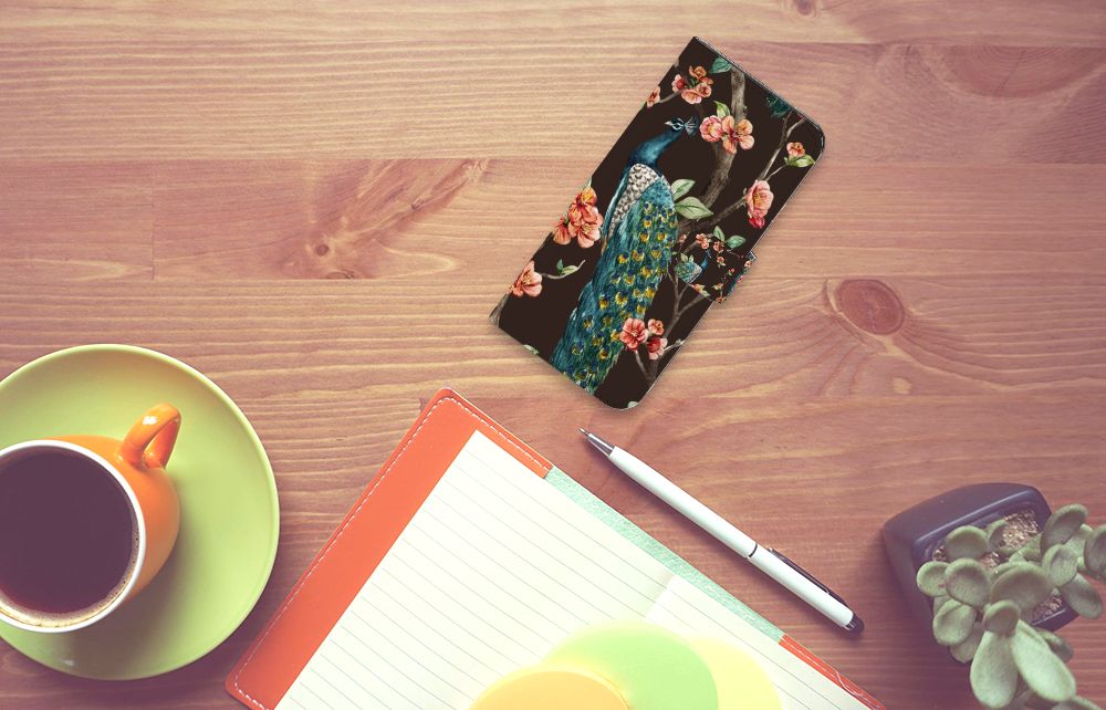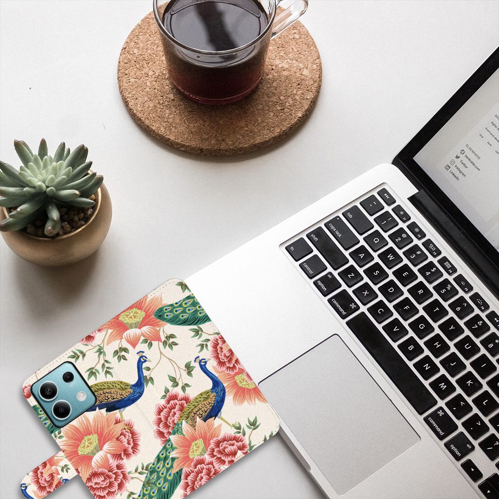 Xiaomi Redmi Note 13 5G Telefoonhoesje met Pasjes Pauw met Bloemen