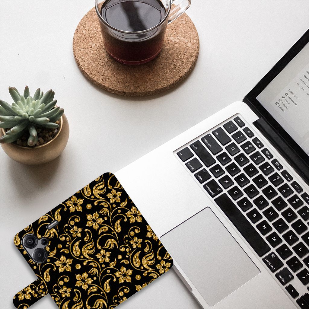 Xiaomi Redmi Note 13 Pro Plus Hoesje Gouden Bloemen