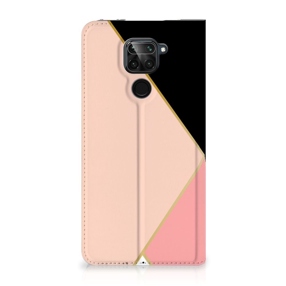 Xiaomi Redmi Note 9 Stand Case Zwart Roze Vormen