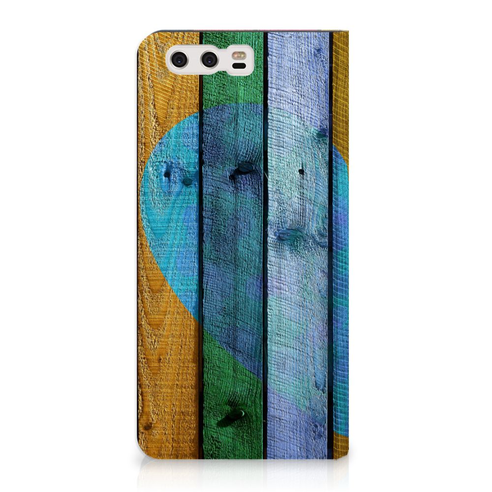 Huawei P10 Lite Book Style Case Wood Heart - Cadeau voor je Vriend