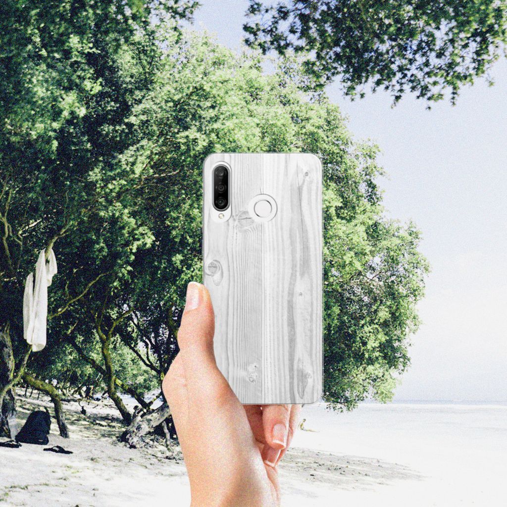 Huawei P30 Lite Bumper Hoesje White Wood