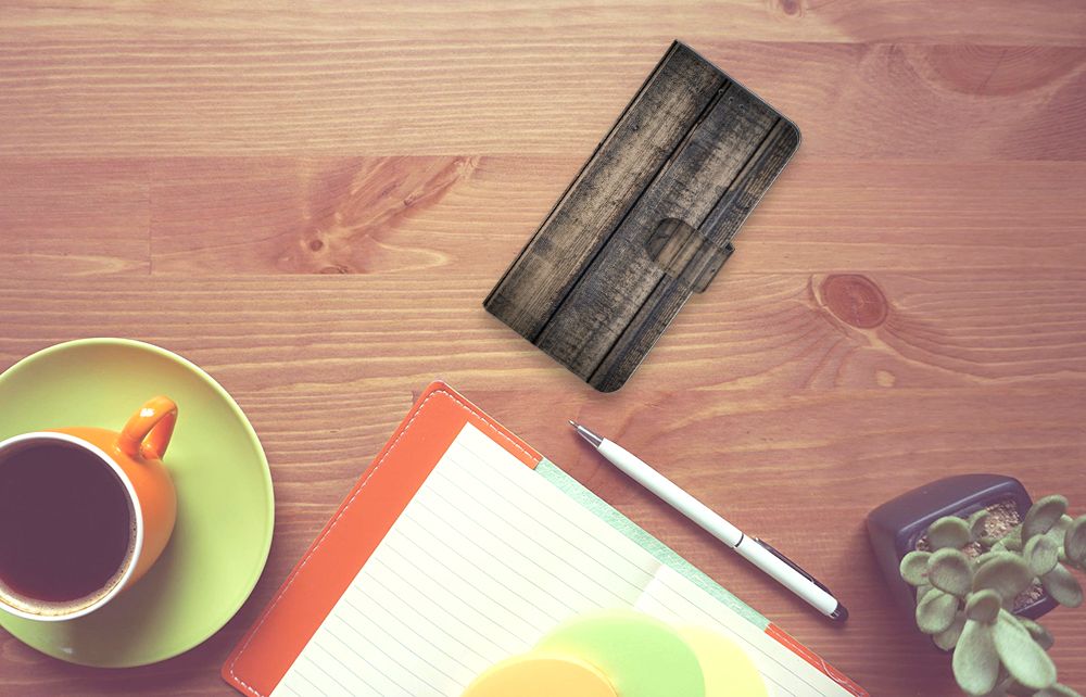 Huawei P40 Lite Book Wallet Case Wood Concrete