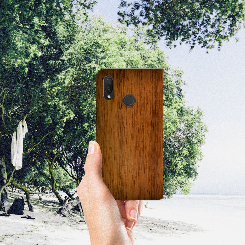 Huawei P Smart Plus Book Wallet Case Donker Hout
