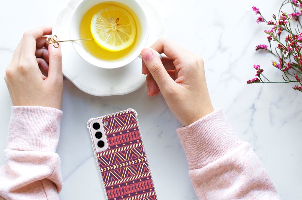Samsung Galaxy S22 Plus Doorzichtige Silicone Hoesje Aztec Paars