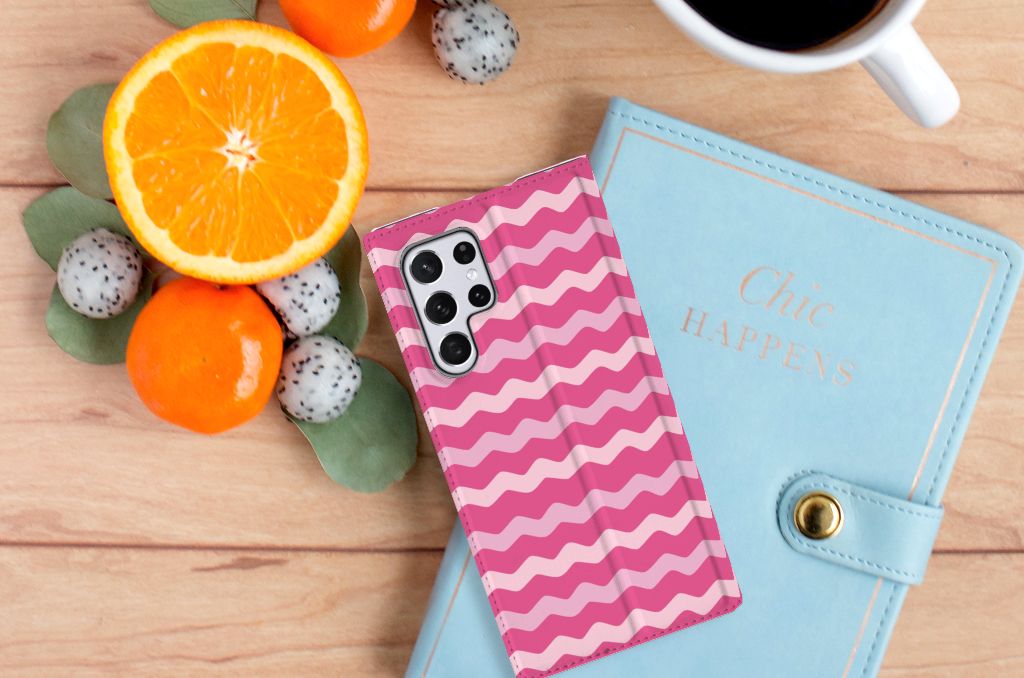 Samsung Galaxy S22 Ultra Hoesje met Magneet Waves Pink