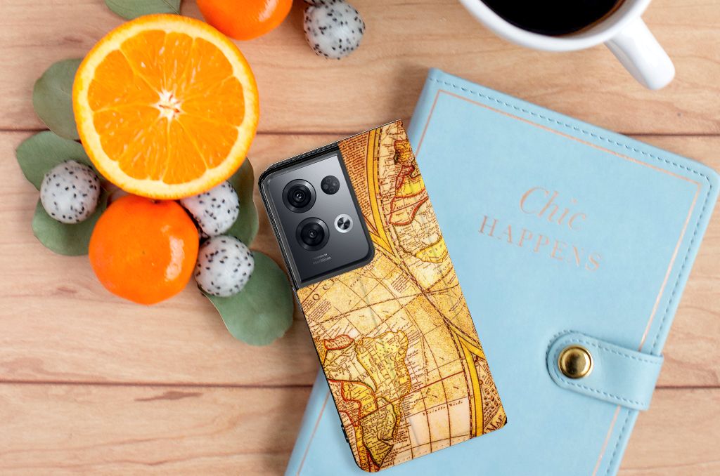 OPPO Reno8 Pro Flip Cover Wereldkaart