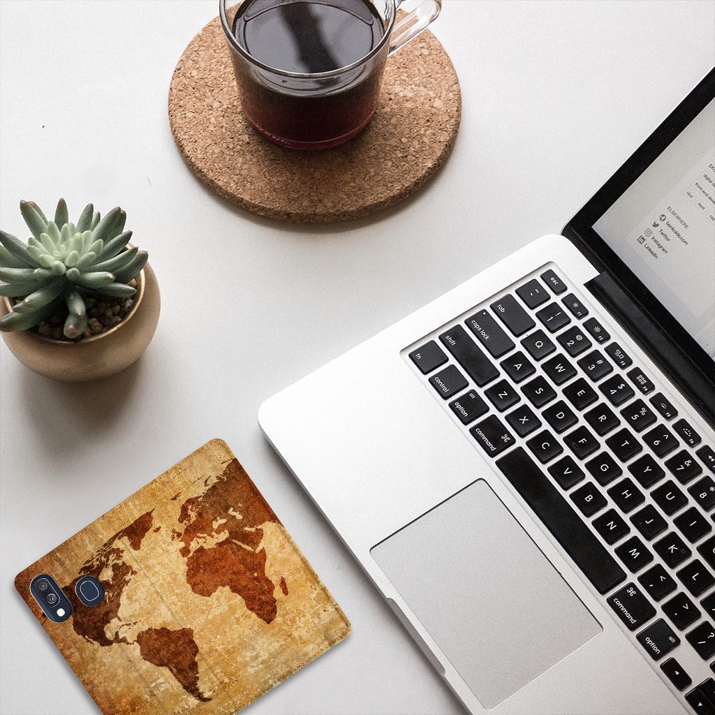Samsung Galaxy A20e Flip Cover Wereldkaart