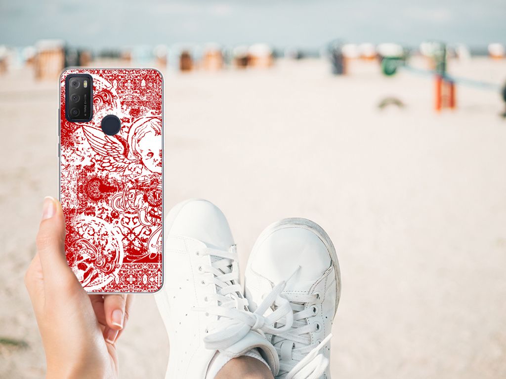 Silicone Back Case Alcatel 1S (2021) Angel Skull Rood