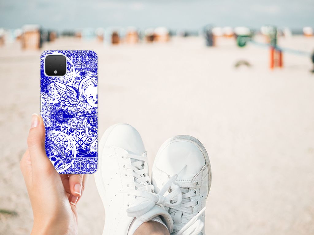 Silicone Back Case Google Pixel 4 Angel Skull Blauw