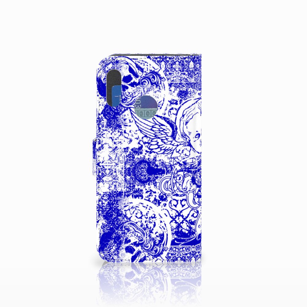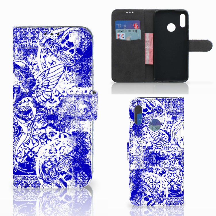 Mobiel BookCase Huawei P Smart (2019) Angel Skull Blauw