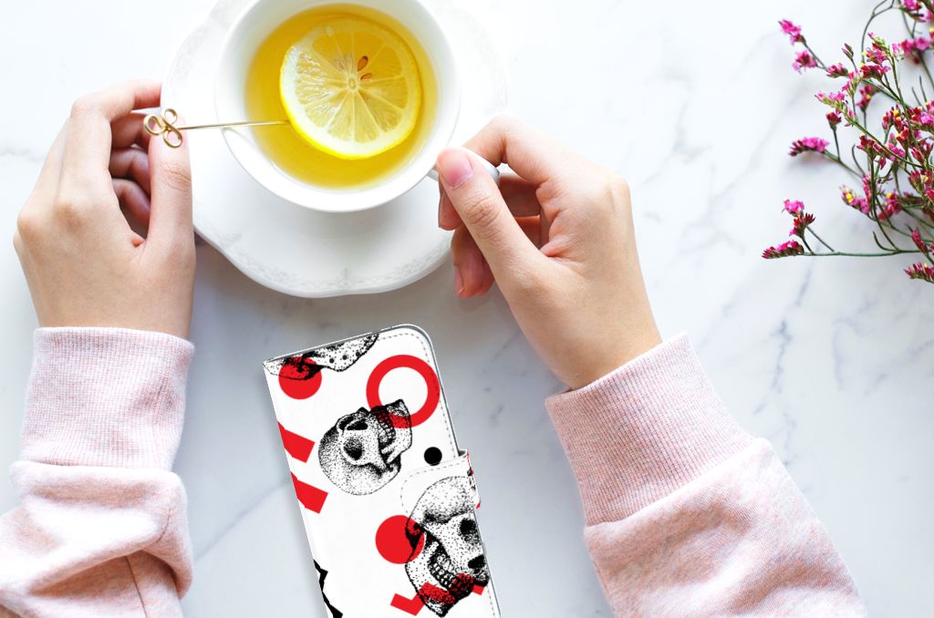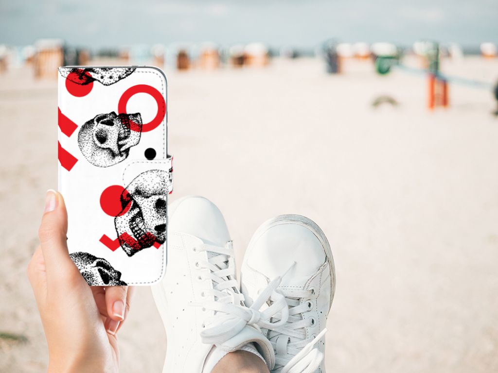 Mobiel BookCase Huawei P Smart (2019) Skull Red