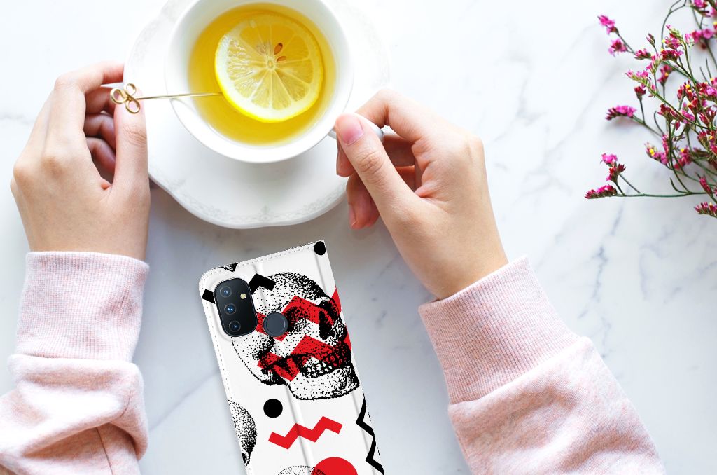 Mobiel BookCase OnePlus Nord N100 Skull Red
