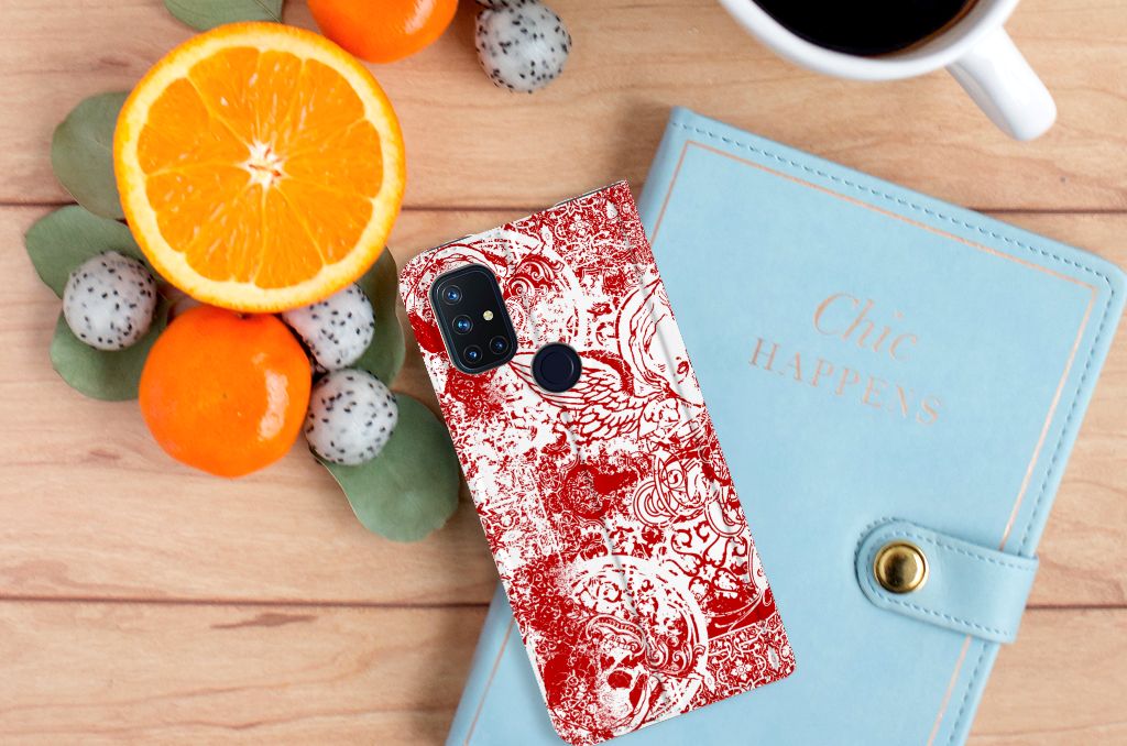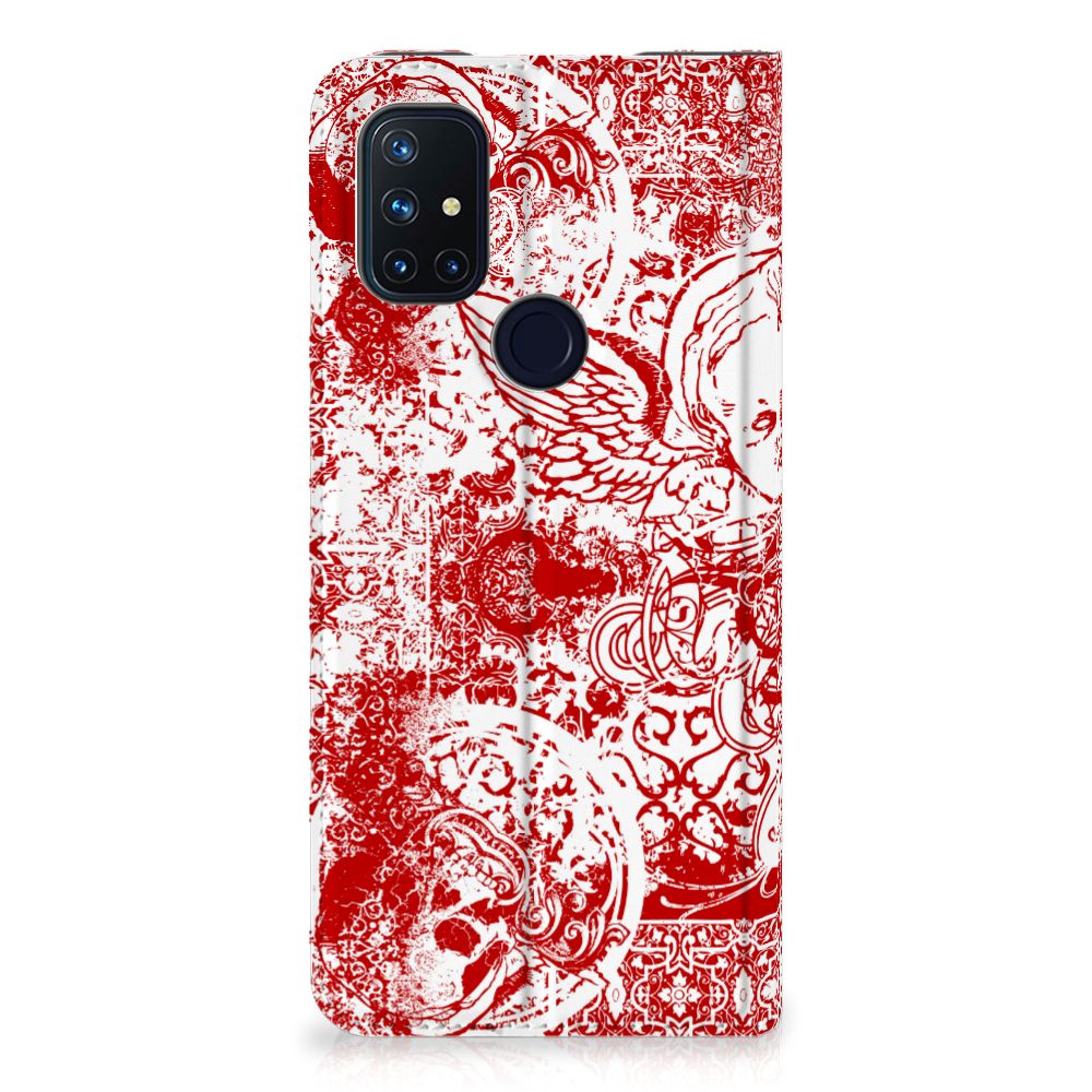 Mobiel BookCase OnePlus Nord N10 5G Angel Skull Rood
