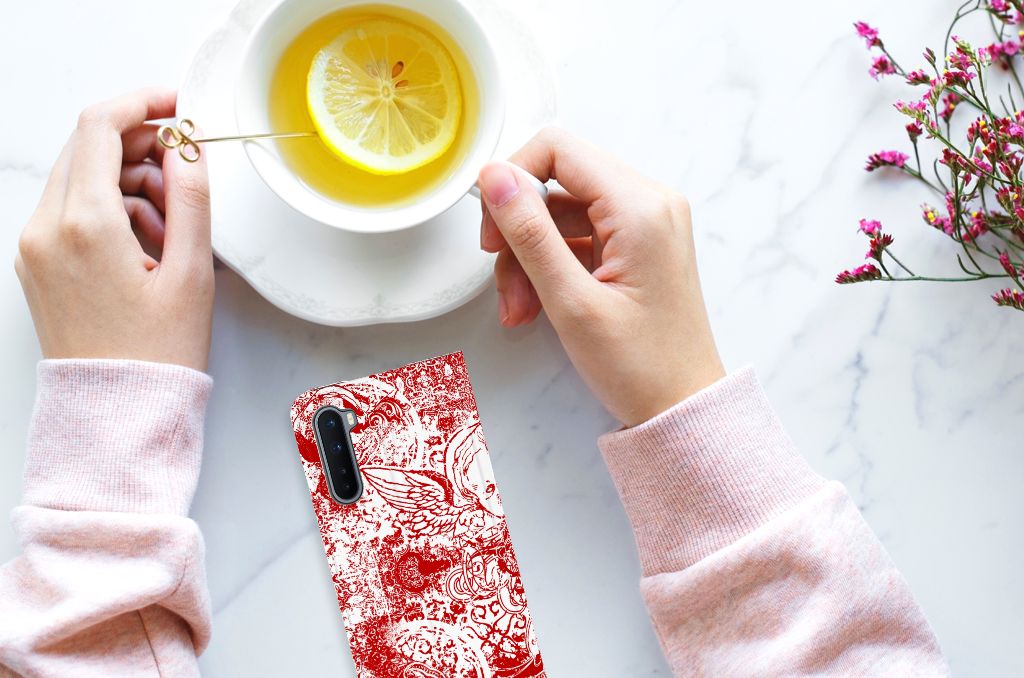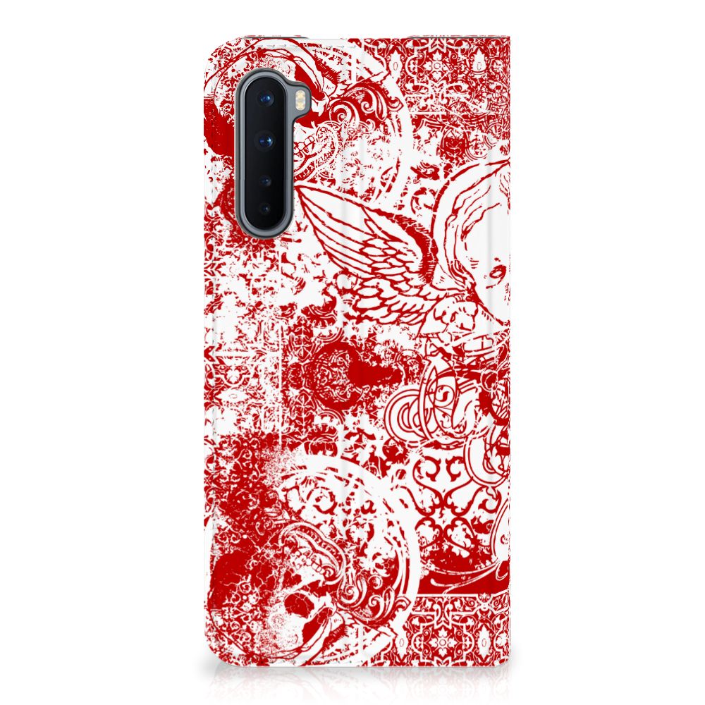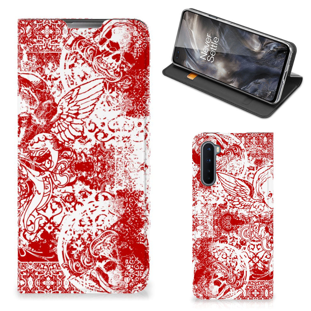 Mobiel BookCase OnePlus Nord Angel Skull Rood
