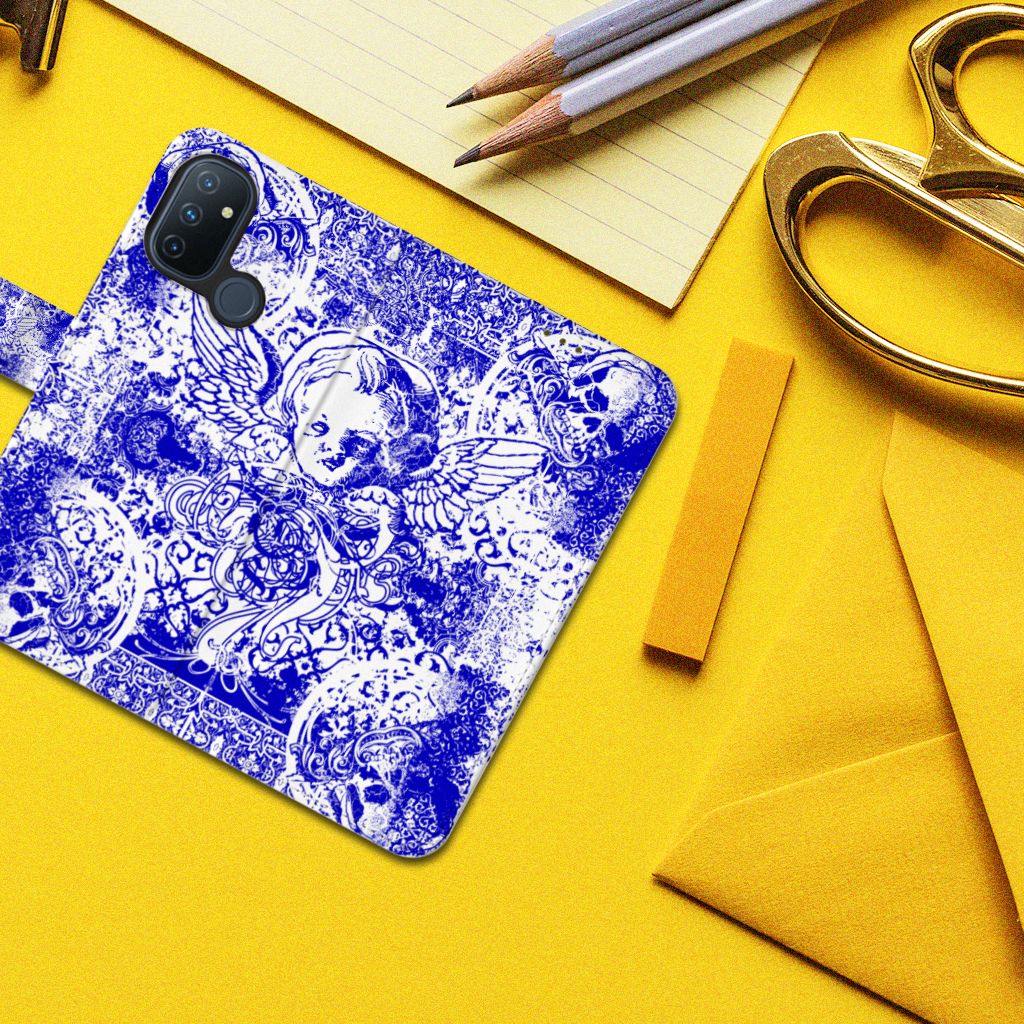Telefoonhoesje met Naam OnePlus Nord N100 Angel Skull Blauw