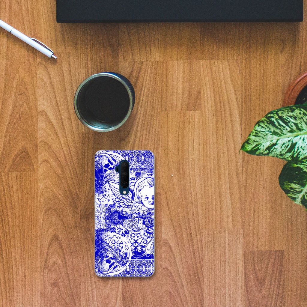 Silicone Back Case OnePlus 7T Pro Angel Skull Blauw