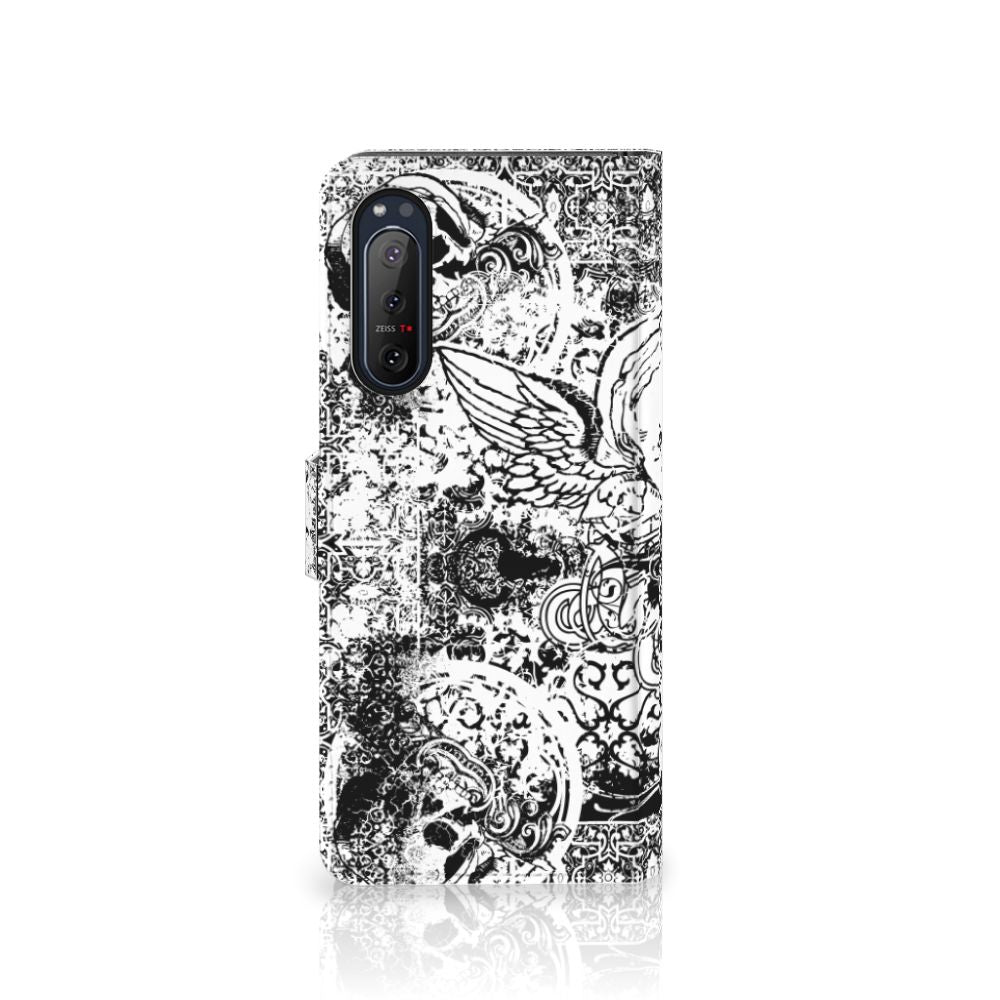 Mobiel BookCase Sony Xperia 5 Angel Skull Blauw