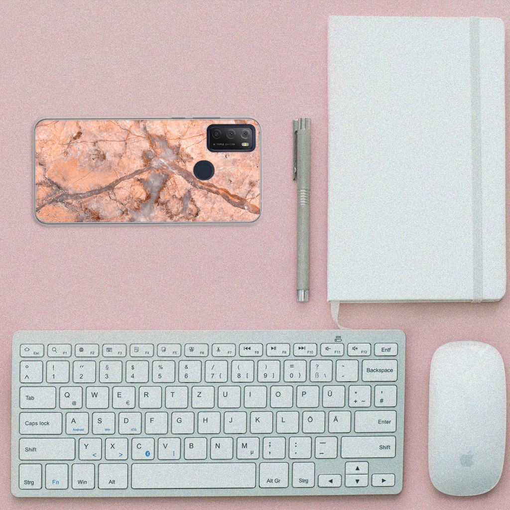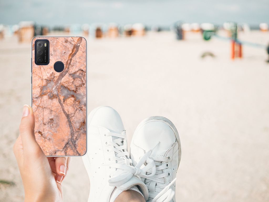 Alcatel 1S (2021) TPU Siliconen Hoesje Marmer Oranje