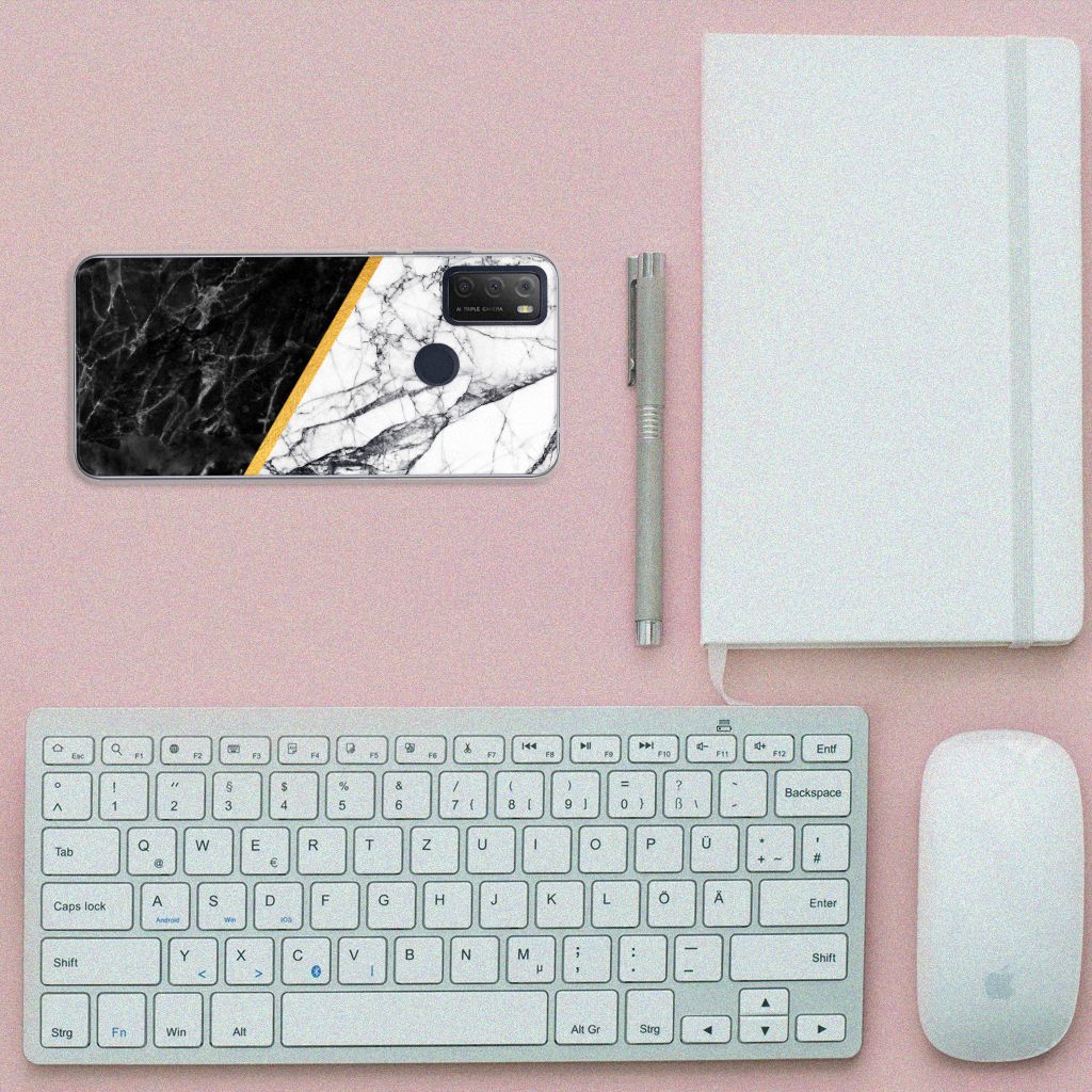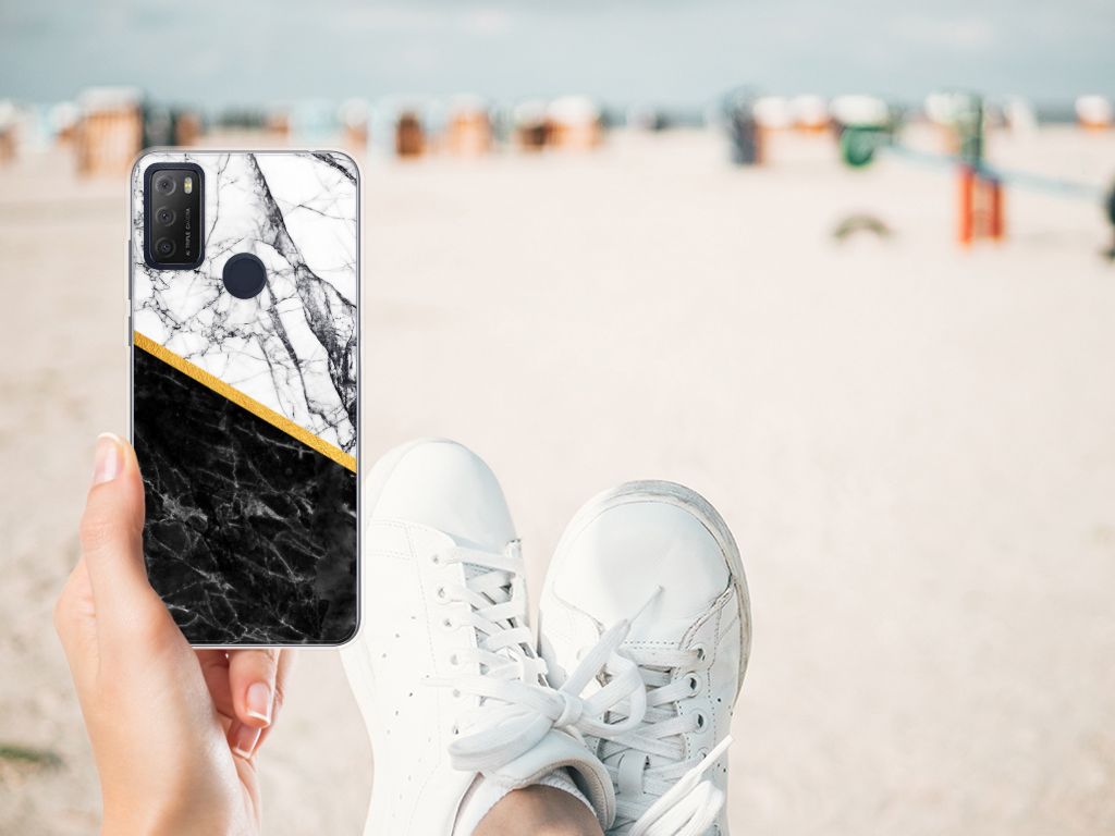 Alcatel 1S (2021) TPU Siliconen Hoesje Marmer Wit Zwart - Origineel Cadeau Man