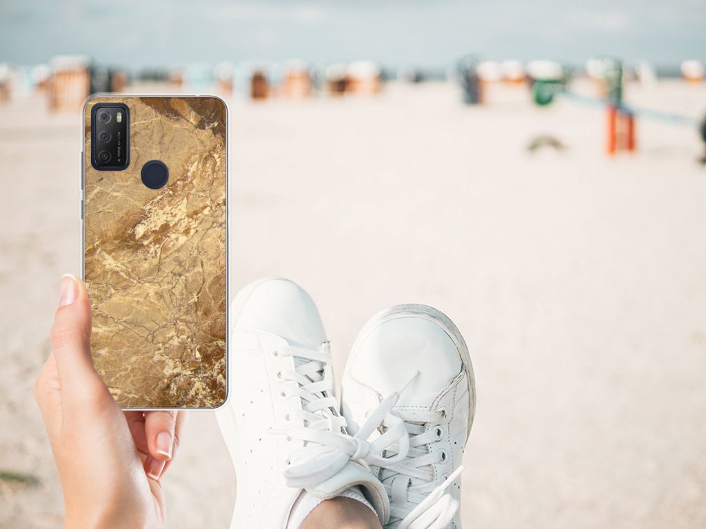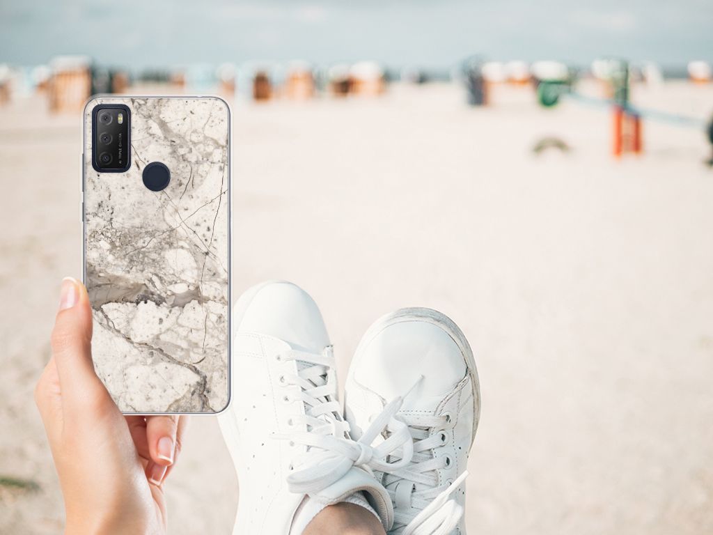 Alcatel 1S (2021) TPU Siliconen Hoesje Marmer Beige