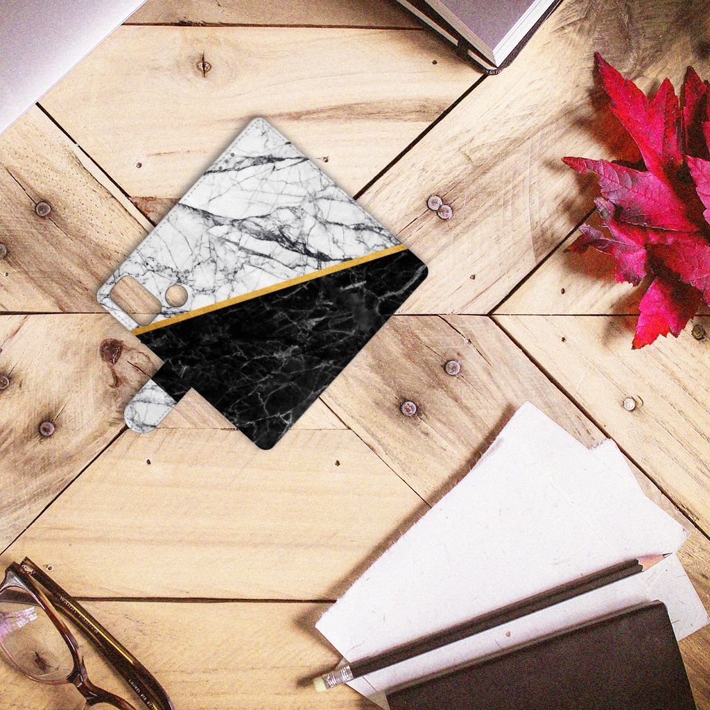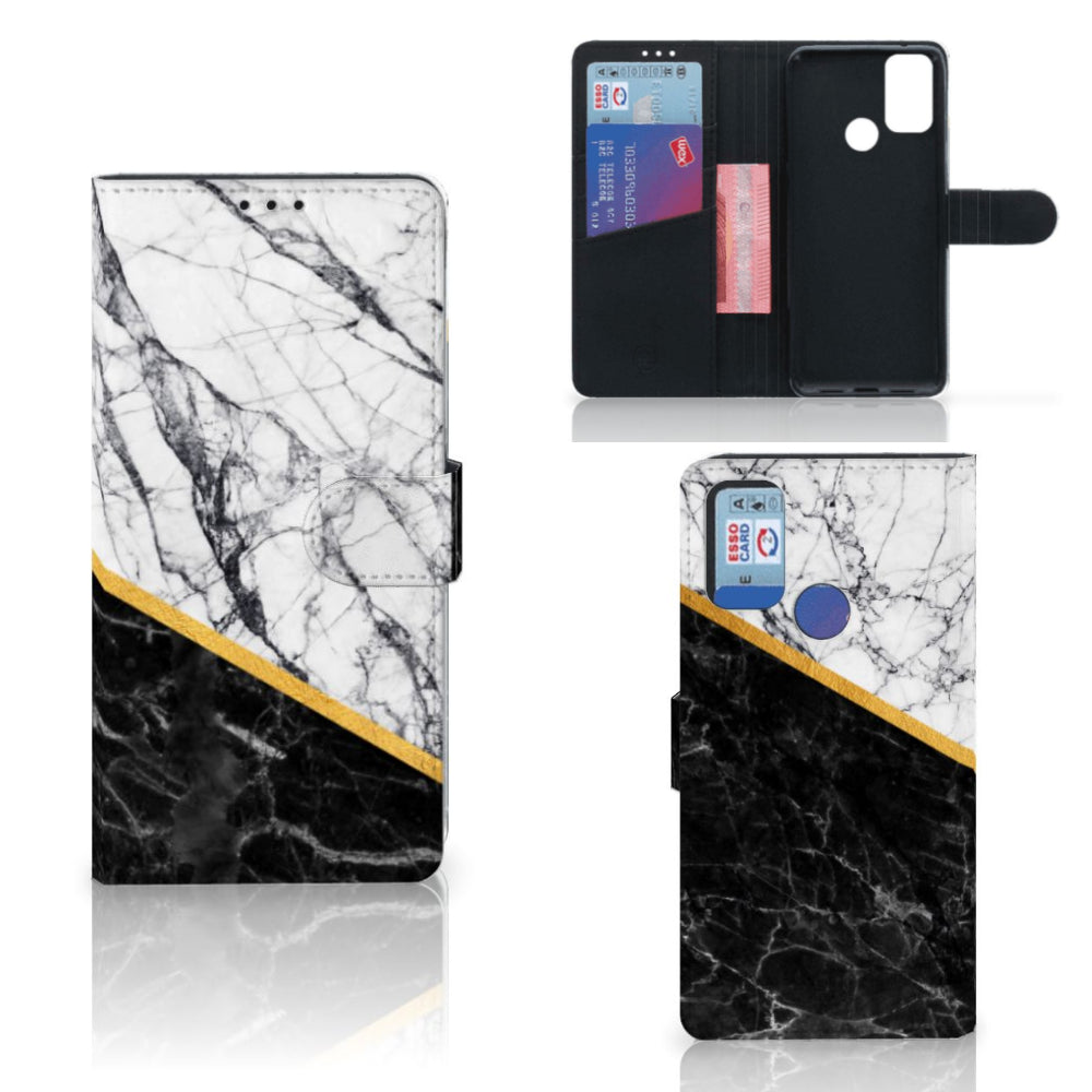 Alcatel 1S (2021) Bookcase Marmer Wit Zwart - Origineel Cadeau Man