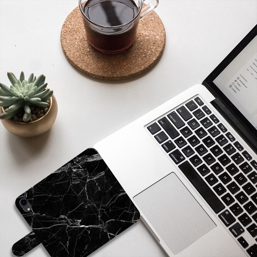 Apple iPhone Xr Bookcase Marmer Zwart - Origineel Cadeau Vader