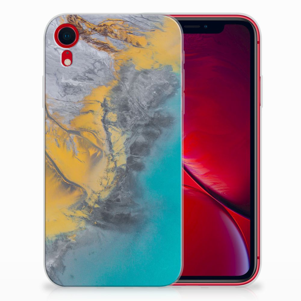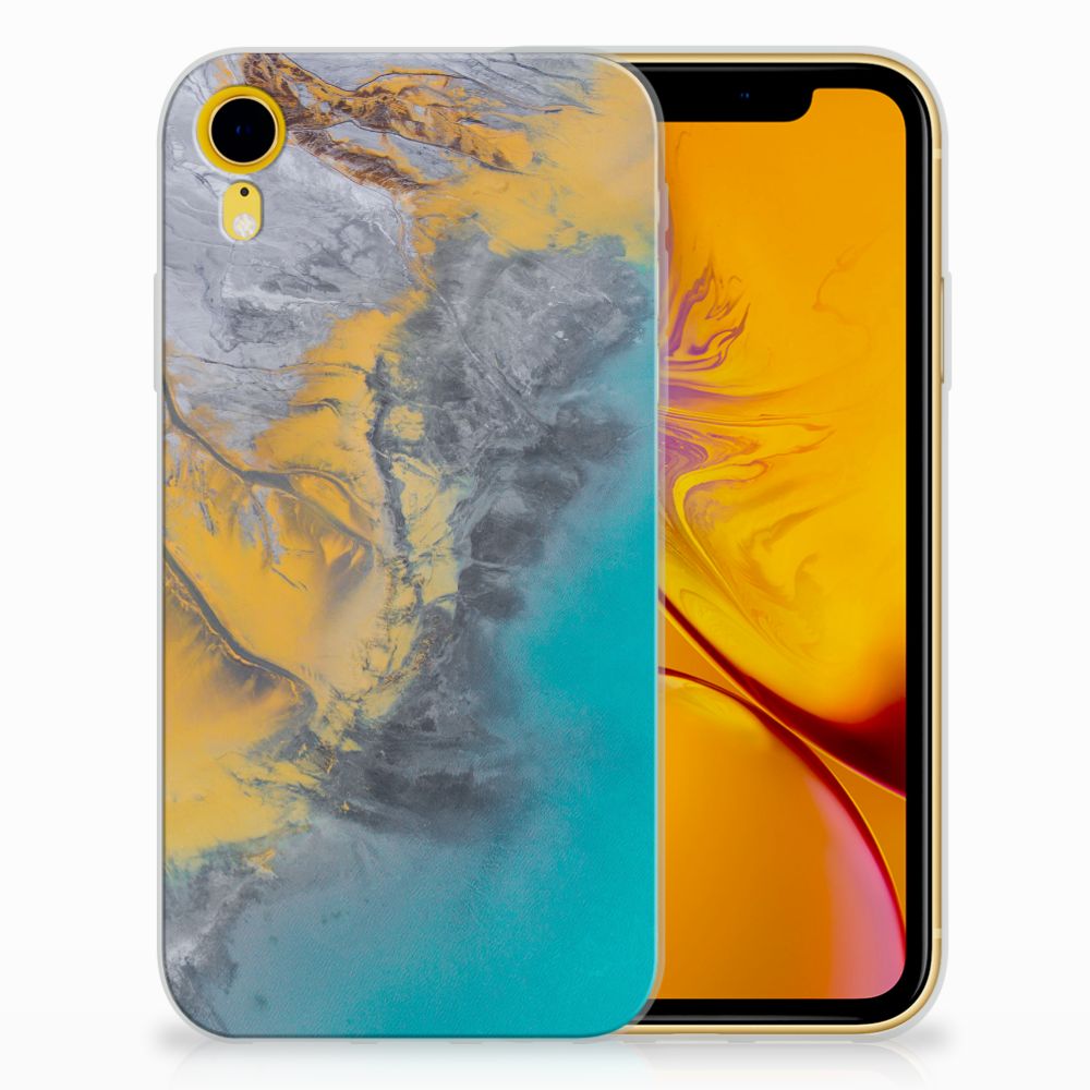 Apple iPhone Xr TPU Siliconen Hoesje Marble Blue Gold