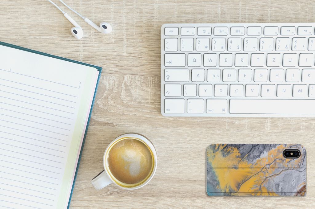 Apple iPhone Xr Bookcase Marble Blue Gold