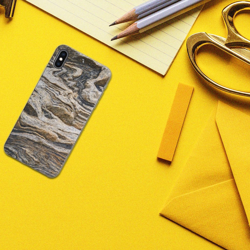 Apple iPhone Xs Max TPU Siliconen Hoesje Marmer Wit Zwart - Origineel Cadeau Man