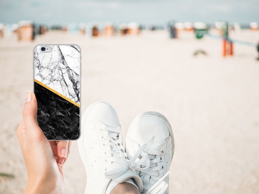Apple iPhone 6 | 6s TPU Siliconen Hoesje Marmer Wit Zwart - Origineel Cadeau Man