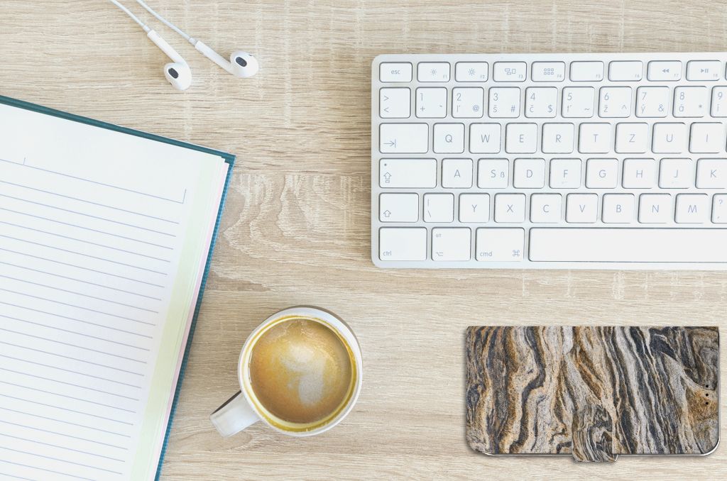 Apple iPhone 7 Plus | 8 Plus Bookcase Marmer Wit Zwart - Origineel Cadeau Man