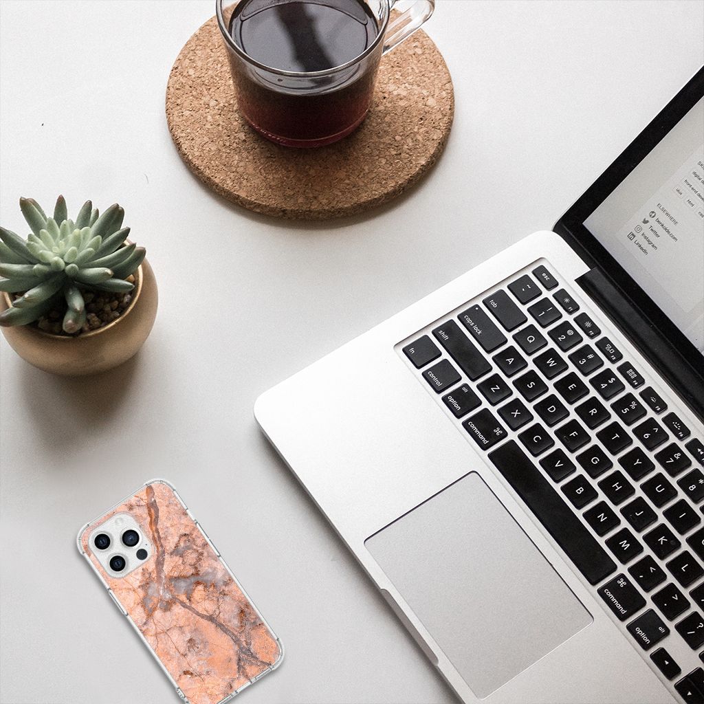 Apple iPhone 13 Pro Anti-Shock Hoesje Marmer Oranje