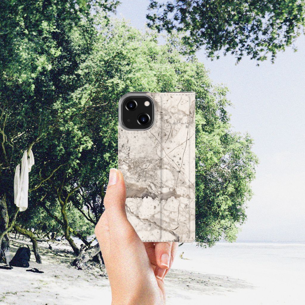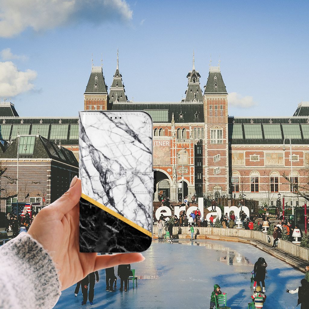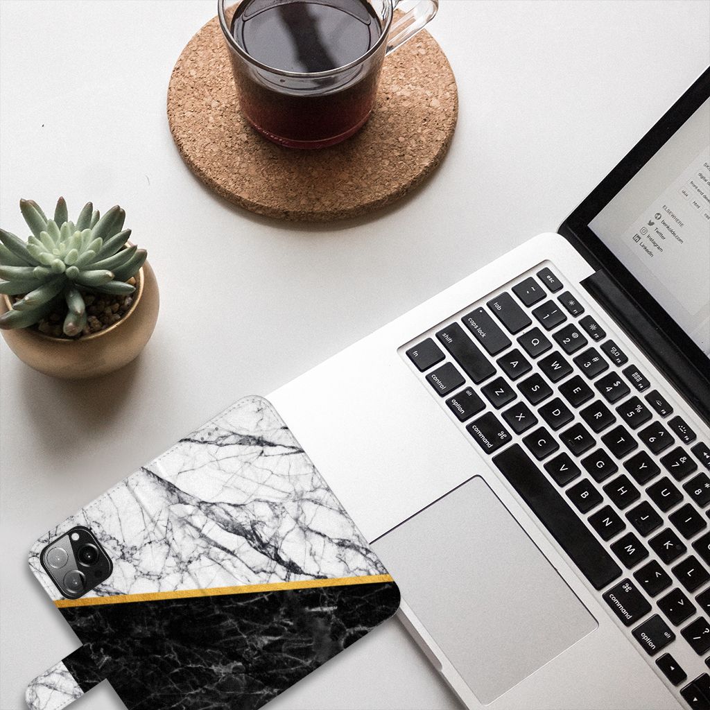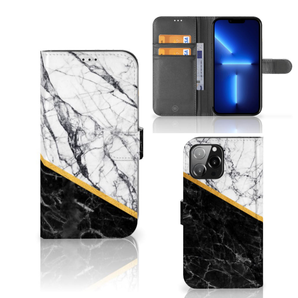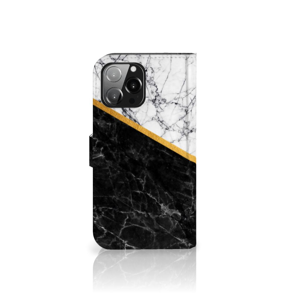 iPhone 13 Pro Max Bookcase Marmer Wit Zwart - Origineel Cadeau Man
