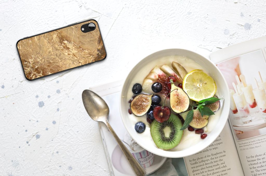 Apple iPhone XR Marmeren Print Telefoonhoesje Marmer Zwart - Origineel Cadeau Vader