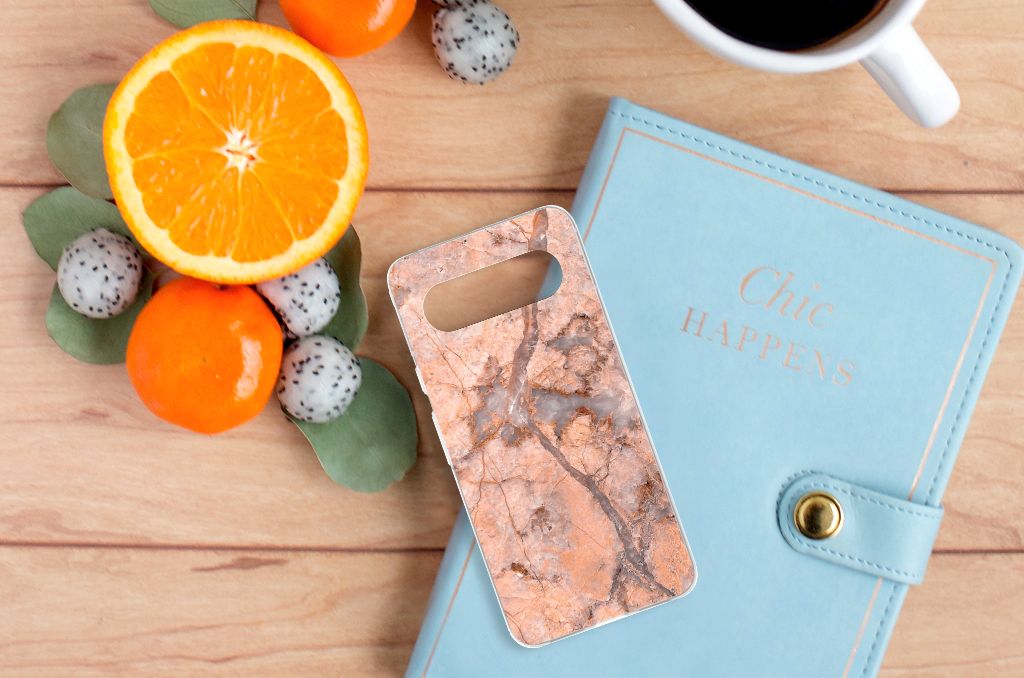 Google Pixel 8 TPU Siliconen Hoesje Marmer Oranje