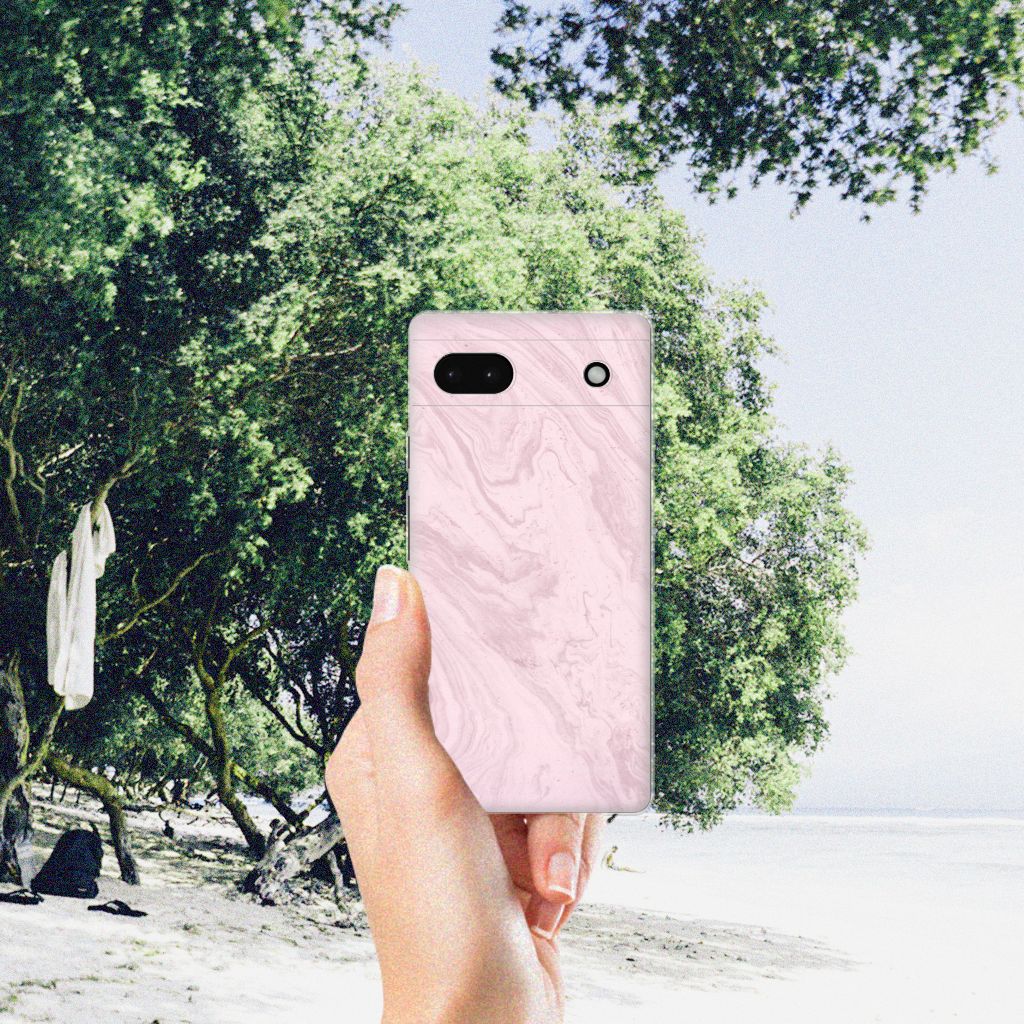 Google Pixel 6A TPU Siliconen Hoesje Marble Pink - Origineel Cadeau Vriendin