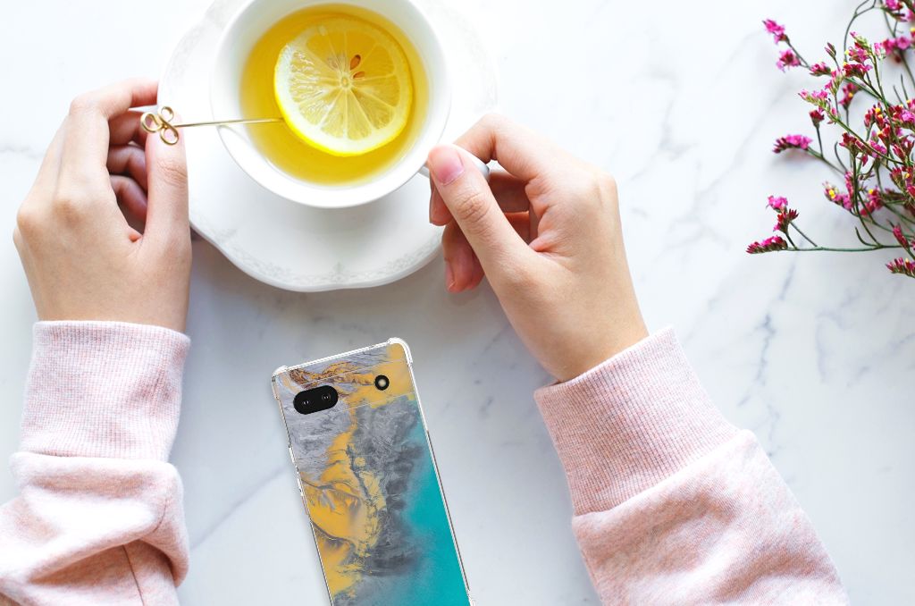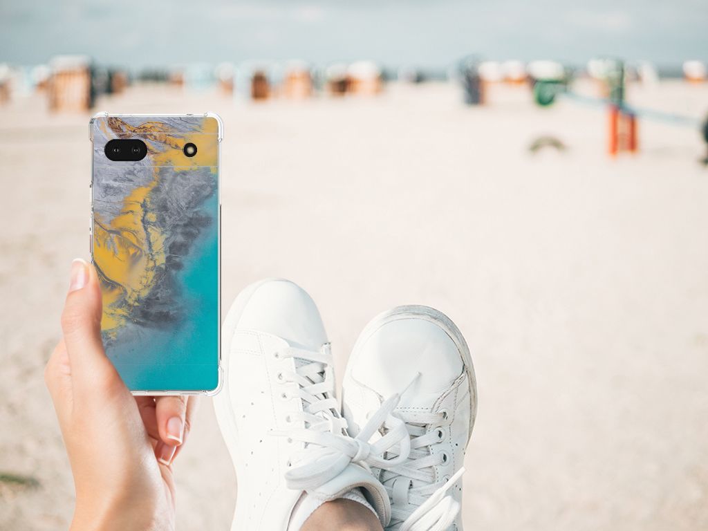 Google Pixel 6A Anti-Shock Hoesje Marble Blue Gold