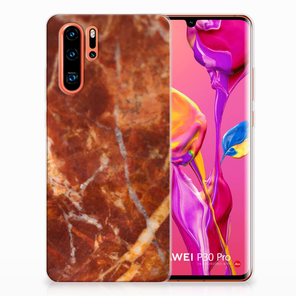 Huawei P30 Pro TPU Siliconen Hoesje Marmer Bruin