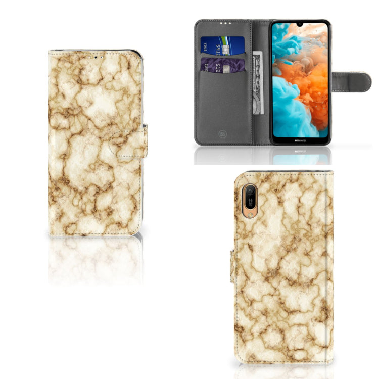 Huawei Y6 (2019) Bookcase Marmer Goud