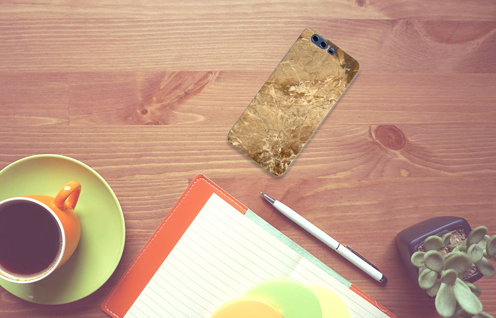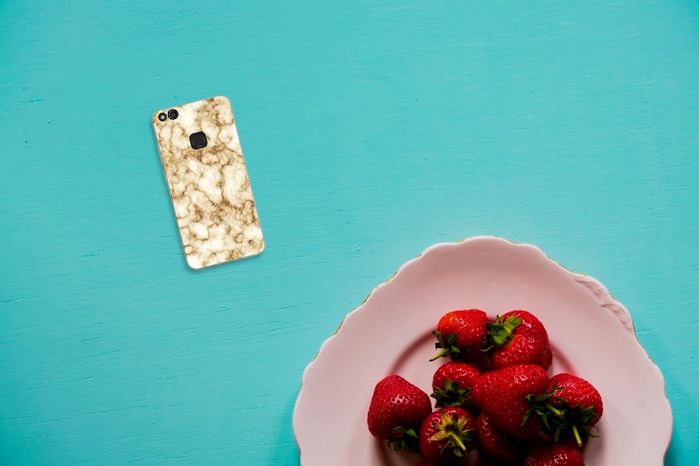 Huawei P10 Lite TPU Siliconen Hoesje Marmer Goud