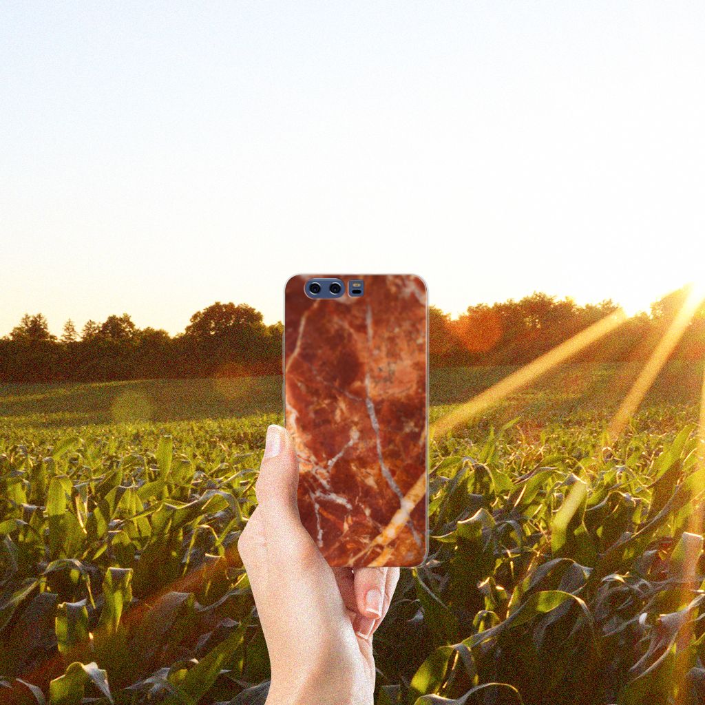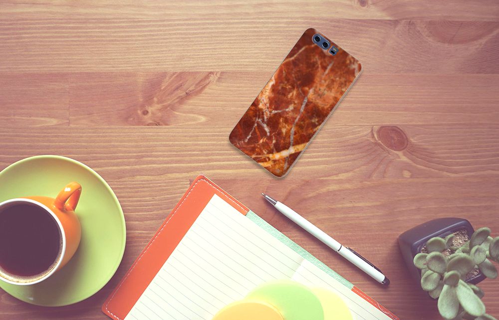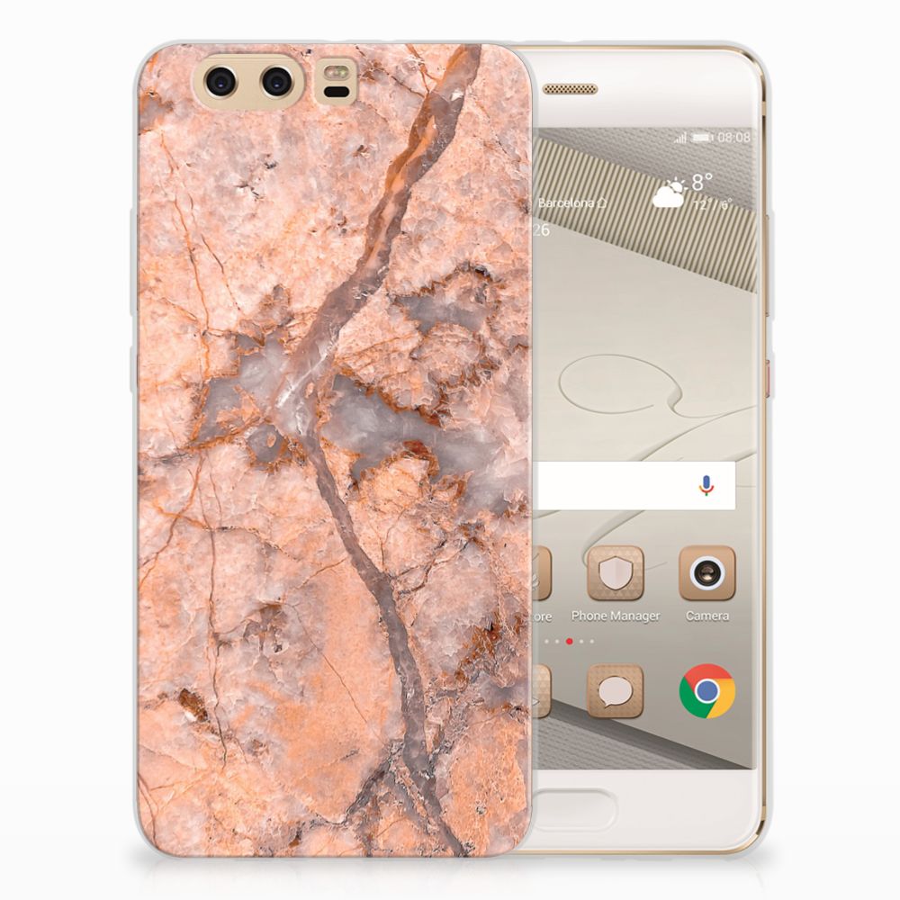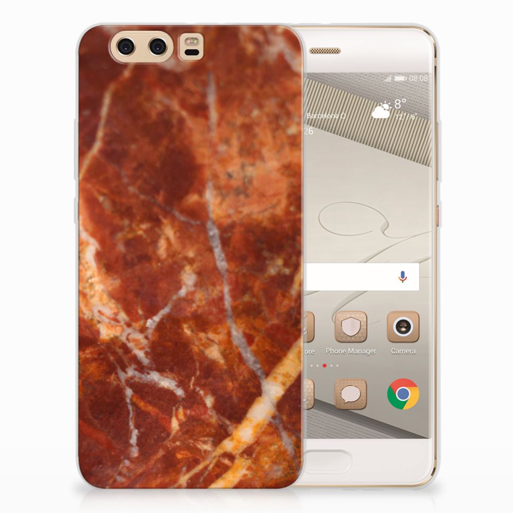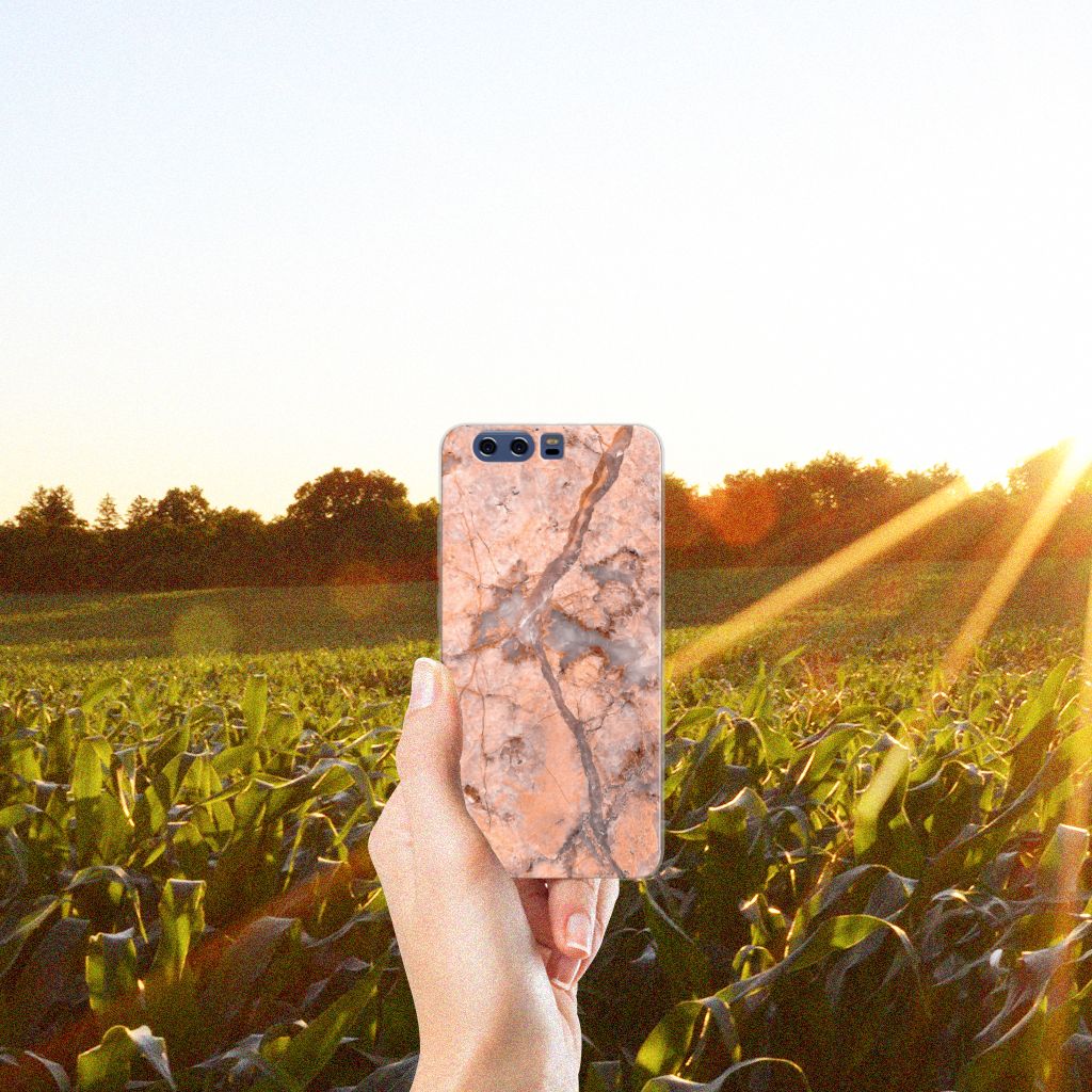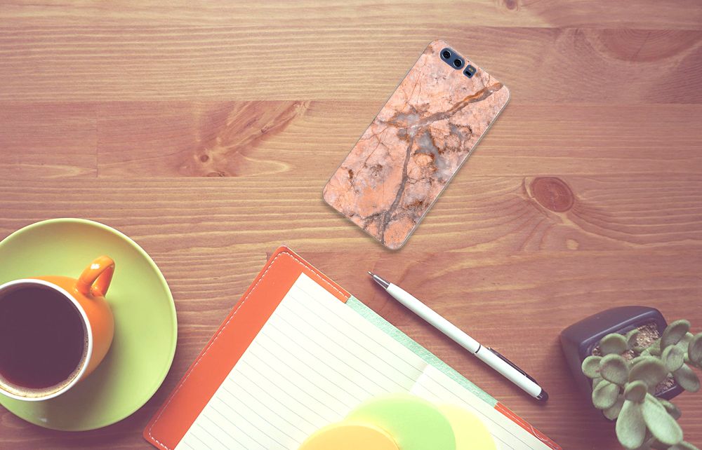 Huawei P10 Plus TPU Siliconen Hoesje Marmer Oranje