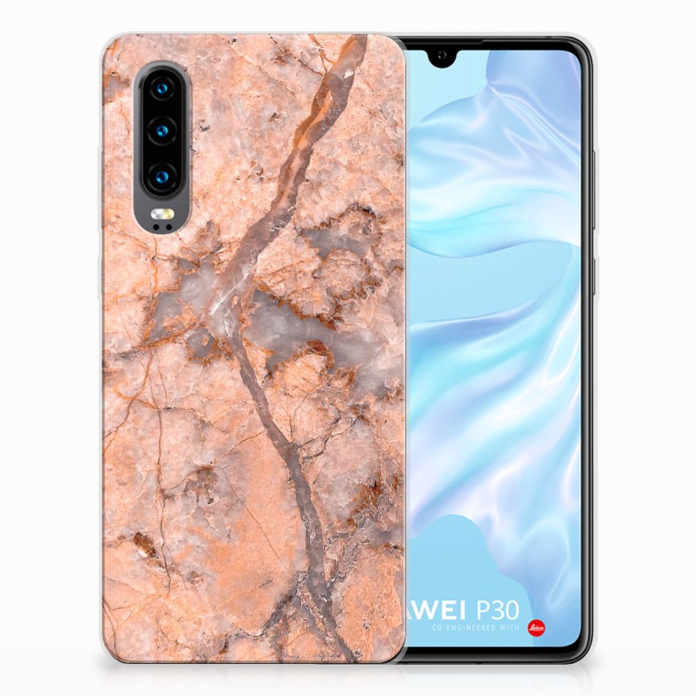 Huawei P30 TPU Siliconen Hoesje Marmer Oranje