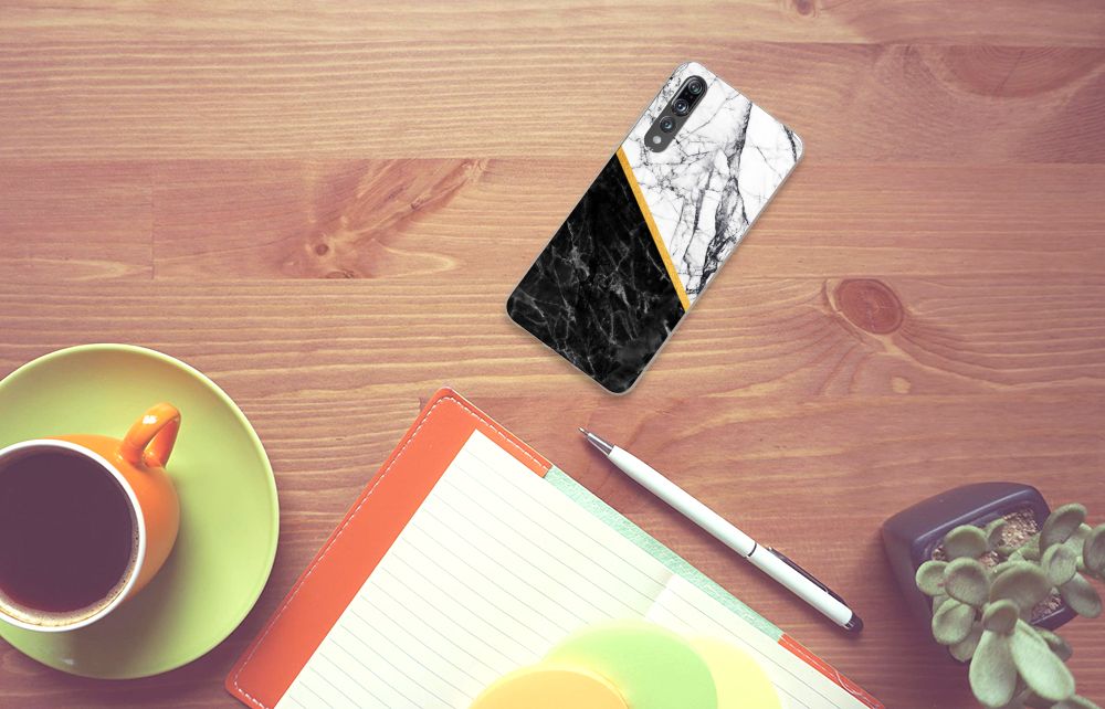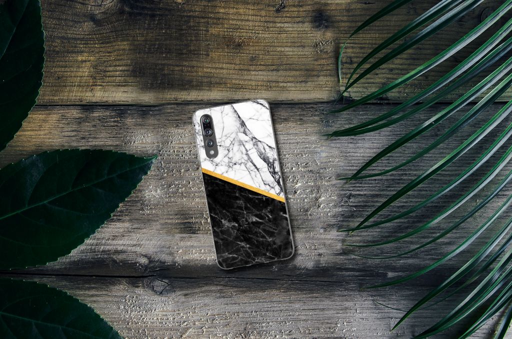 Huawei P20 Pro TPU Siliconen Hoesje Marmer Wit Zwart - Origineel Cadeau Man