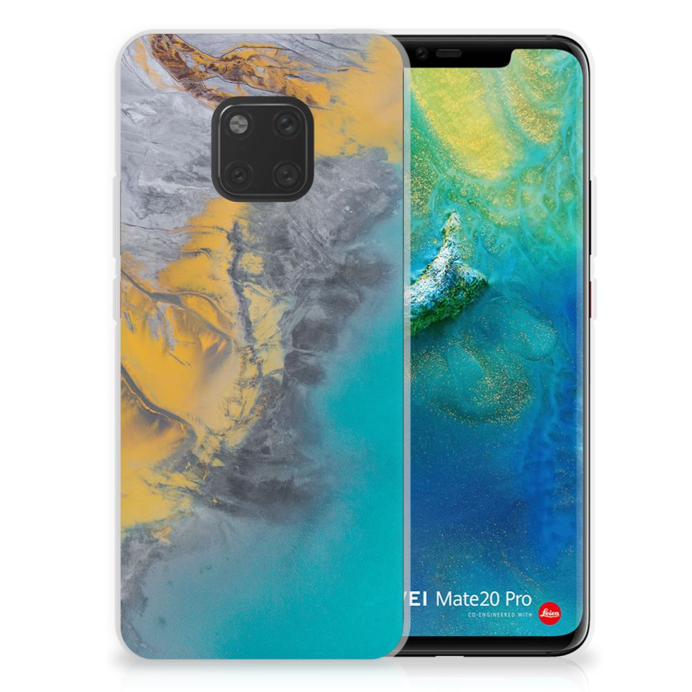 Huawei Mate 20 Pro TPU Siliconen Hoesje Marble Blue Gold
