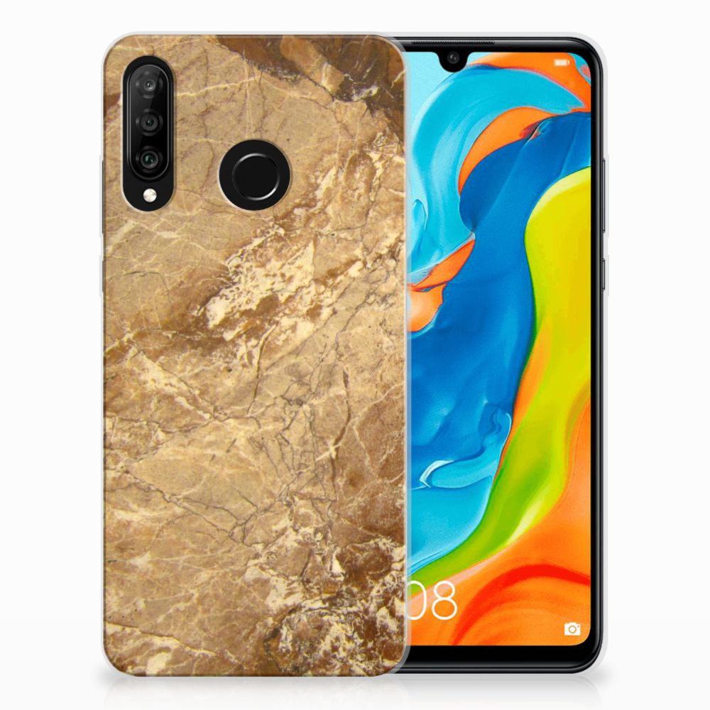 Huawei P30 Lite TPU Siliconen Hoesje Marmer Creme