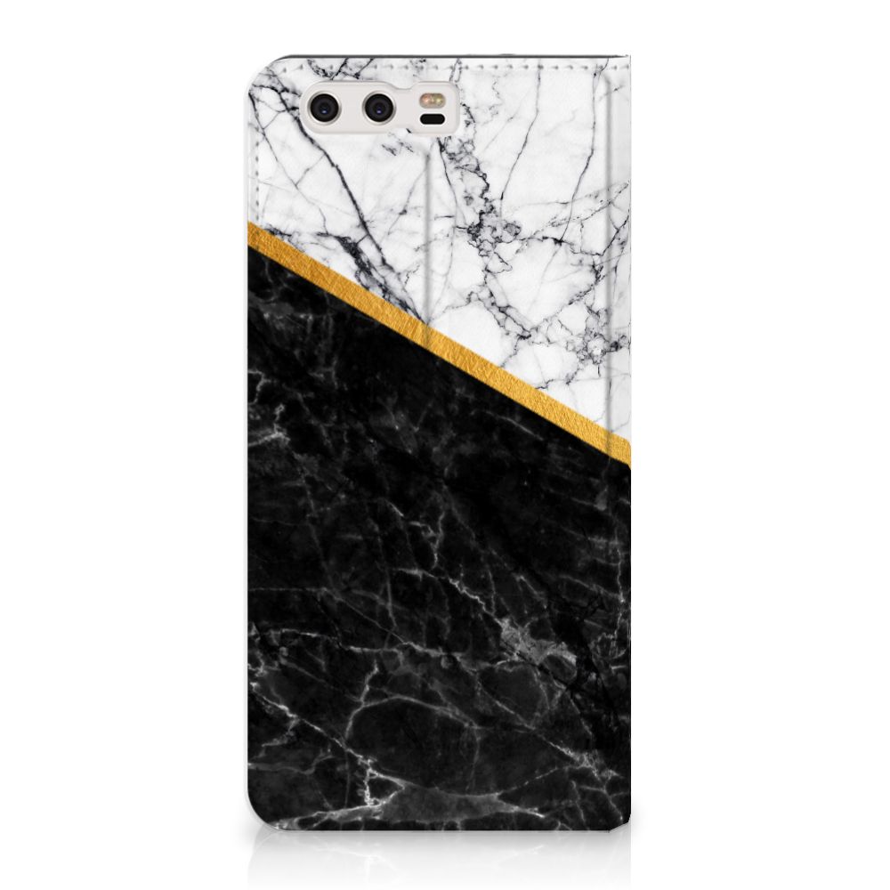 Huawei P10 Plus Standcase Marmer Wit Zwart - Origineel Cadeau Man