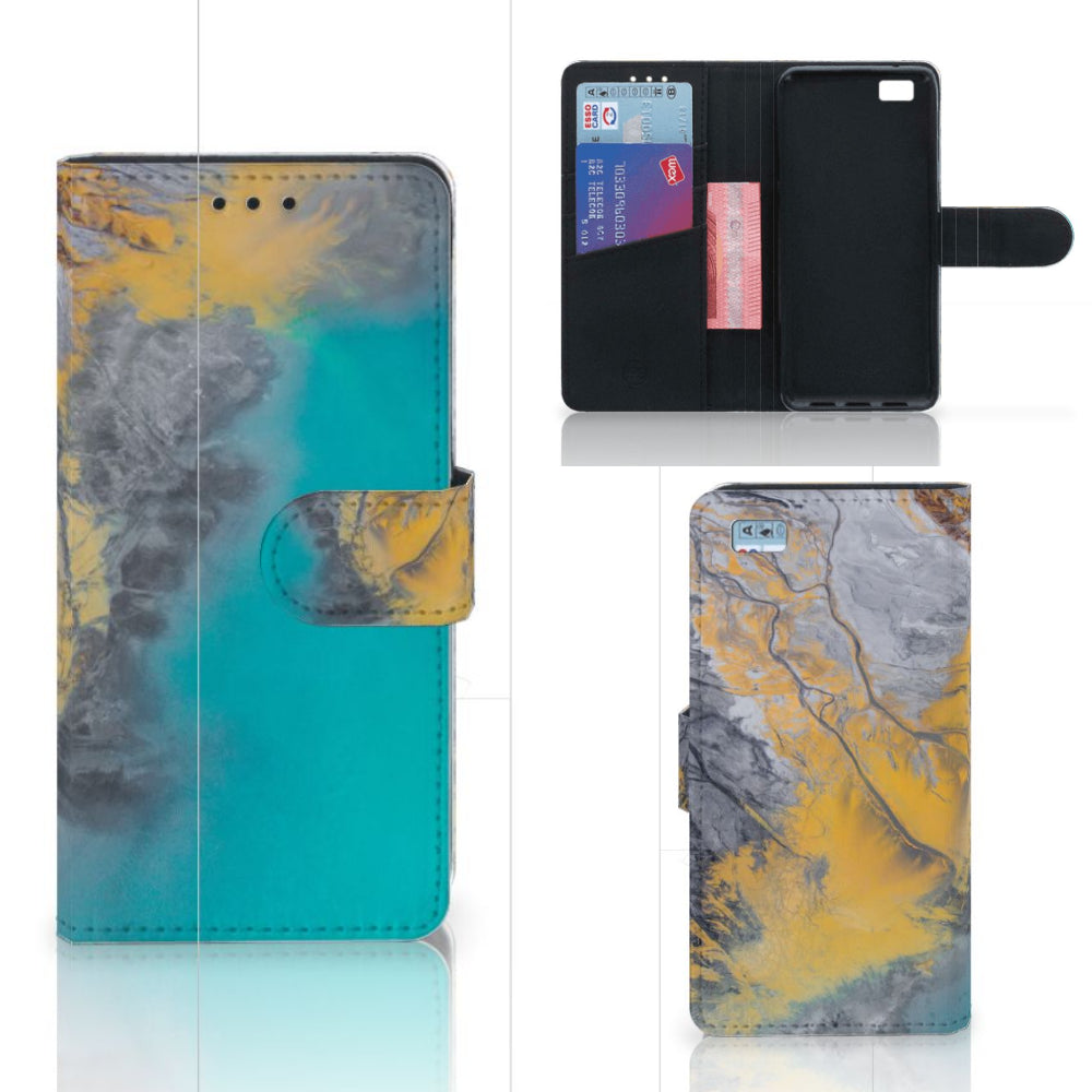 Huawei Ascend P8 Lite Bookcase Marble Blue Gold
